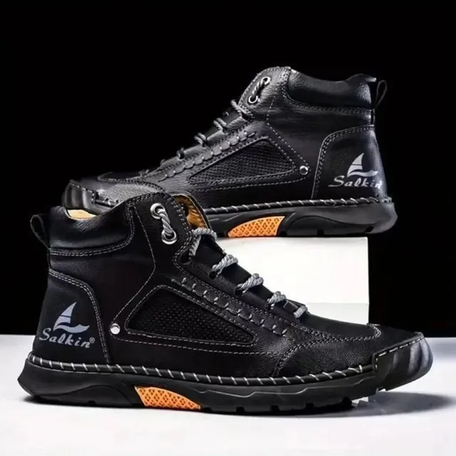 Men's Comfortable Handmade Leather Boots – Waterproof, Arch Support, Pressure Relief, Spacious Toe Box Outdoor Leather Shoes